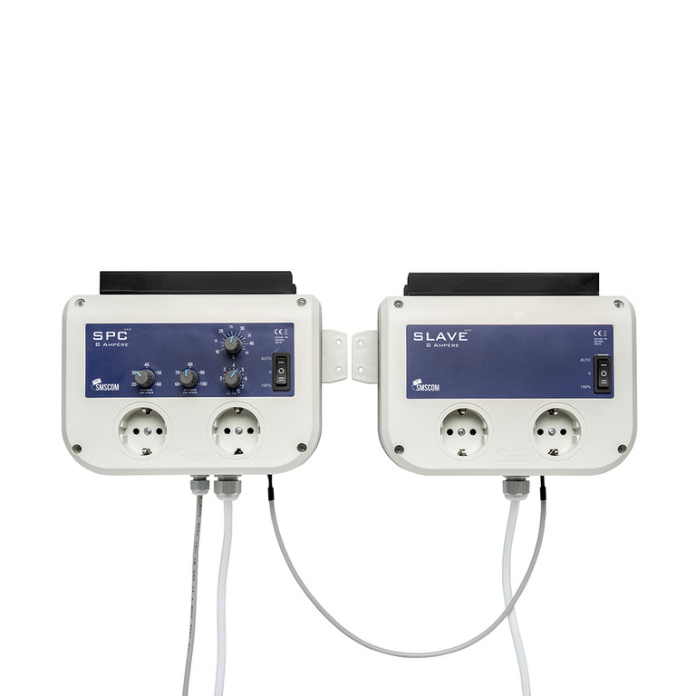 The SMSCOM SPC 8A is a heavy duty twin fan controller that automatically adjusts the speed of both an inlet and exhaust fan to maintain a set temperature and optimum air pressure inside the room. The SPC will automatically calculate the exact running speed for your fans to maintain the temperature you set. The highest and lowest speeds the fans can work between are user controllable.