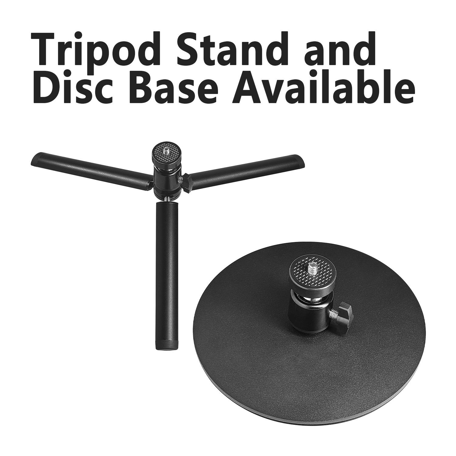 | Jalusta | Säädettävä tripod, pallonivel ja säätövarsi (lampun varsi n. 0,25–0,98 m) |